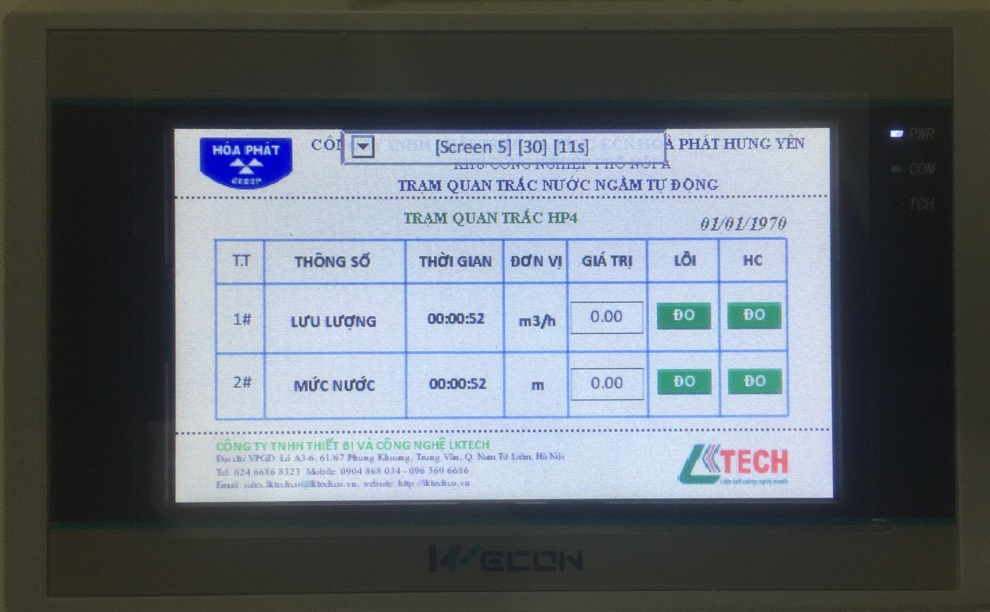 - Màn hình HMI hiển thị dữ liệu tại chỗ: