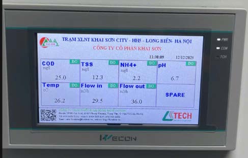 * Hiển thị tại chỗ dữ liệu quan trắc bao gồm các thông tin thông số đo, kết quả đo, đơn vị đo, thời gian đo, trạng thái của thiết bị đo(đang đo, hiệu chuẩn và báo lỗi thiết bị).